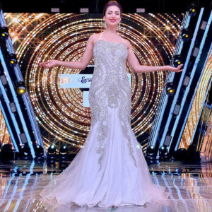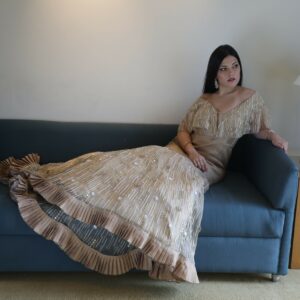 ₹42,000.00Organza Tail Gown With Vertical Handcrafted