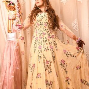 Original price was: ₹85,000.00.₹75,000.00Current price is: ₹75,000.00.Organza Gown With Full Heavy Phulwari