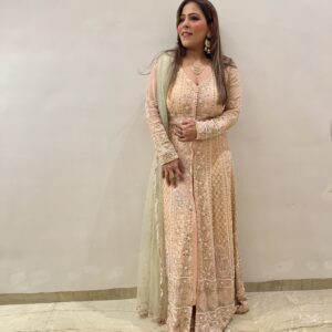 ₹60,000.00Powder Peach Pure Georgette Lucknowi Jacket